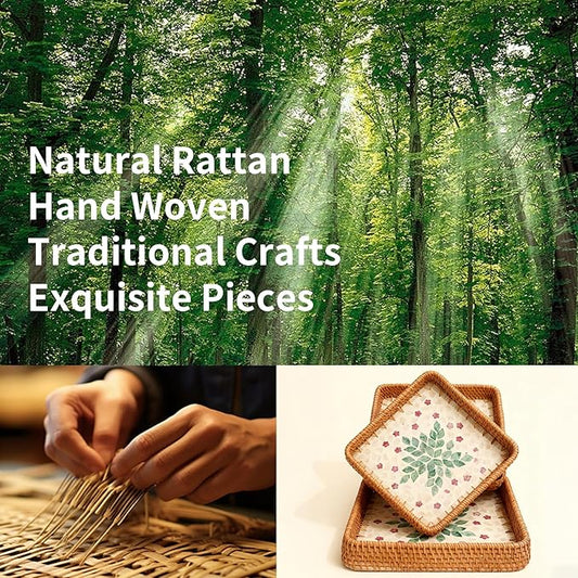 1 pcs Rectangle Rattan Serving Tray with Mother of Pearl Inlay, Decorative Wicker Tray for Coffee, Bread, Fruits, Elegant Table Decor for Living Room & Dining Room
