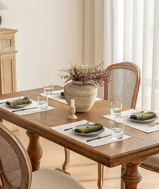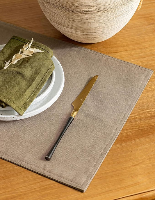 Placidy Farmhouse Linen Dining Table Mats Set of 4 Boho Farmhouse Plate Coasters Fabric Indoor Placemats Heat Resistant Washable 12x18 Inch