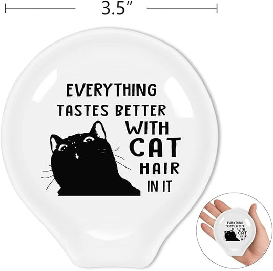 WHING Funny White Ceramic Coffee Tea Spoon Rest, Everything Tastes Better With Dog Hair in it - Coffee Station Decor Coffee Holder Accessories Gift for Coffee Lovers Friends, 3.8x3.4x0.2
