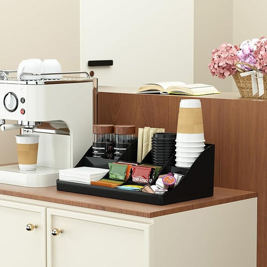 Coffee Station Organizer, Coffee Bar Cup Holder, Kitchen Countertop Accessories for Sugar Packet Condiment (Black, 1 Pcs)