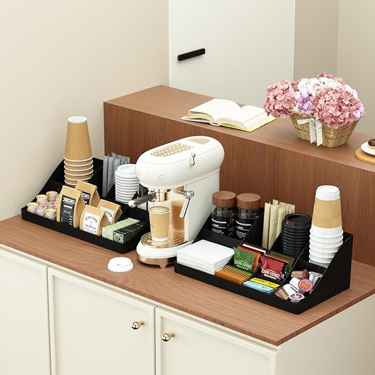 Coffee Station Organizer, Coffee Bar Cup Holder, Kitchen Countertop Accessories for Sugar Packet Condiment (Black, 2 Pcs)